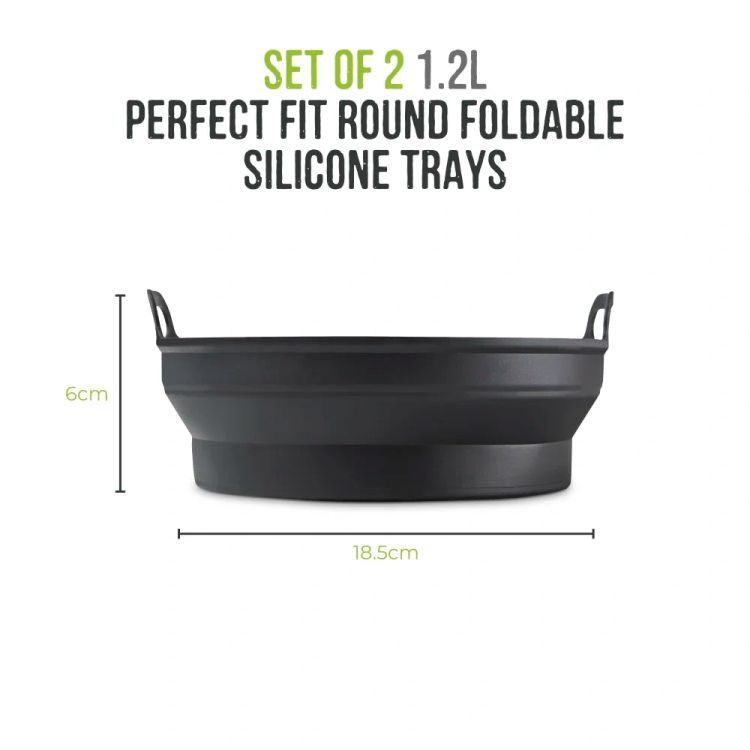 • Set of 2 round silicone trays with collapsible sides