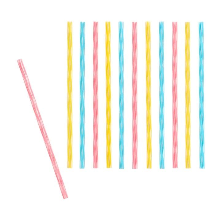 Pack of 12 pink blue and yellow mixed straws.