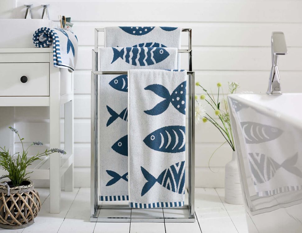 Bring seaside style to your bathroom or beach day with the Lobster Creek Big Fish Towel Collection.