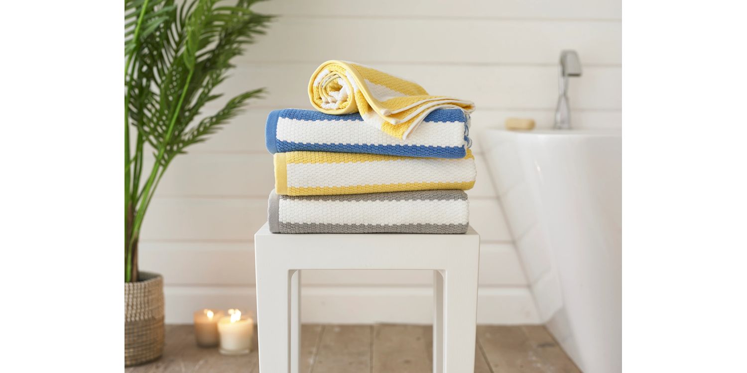 The bold stripe design adds a fresh, nautical feel, perfect for adding personality to your bathroom or beach bag. Thick yet quick-drying, they’re available in three vibrant colourways to suit your style.