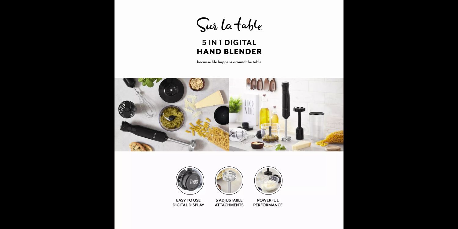 Introducing the next generation of food preparation with this 1000W Digital 5-in-1 Hand Blender from Sur La Table. It’s an essential kitchen tool any home cook or baker needs to make a range of delicious healthy meals and snacks.