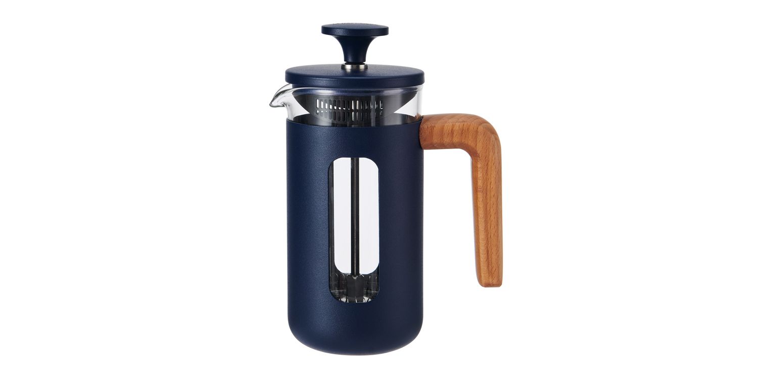 Renowned for its ease of use and superior performance, this French press coffee maker is crafted from heat-resistant borosilicate glass encased in a sturdy, stainless steel frame. It also features a natural beechwood handle and a fine, mesh filter inside to trap any unwanted grains from entering your cup.