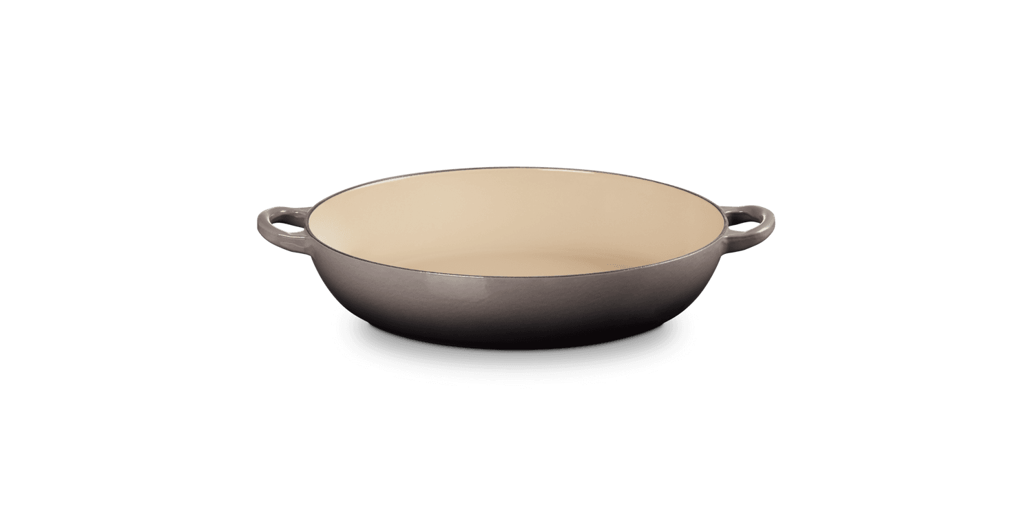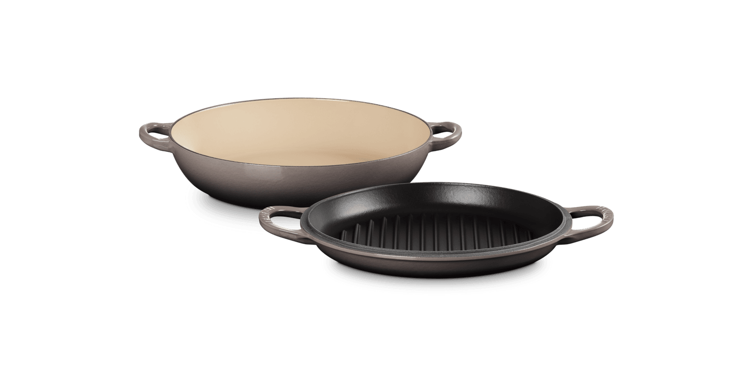 Le Creuset Flint Shallow Casserole 30cm with Reversible Grill Lid with Free Silicone Handle Grips