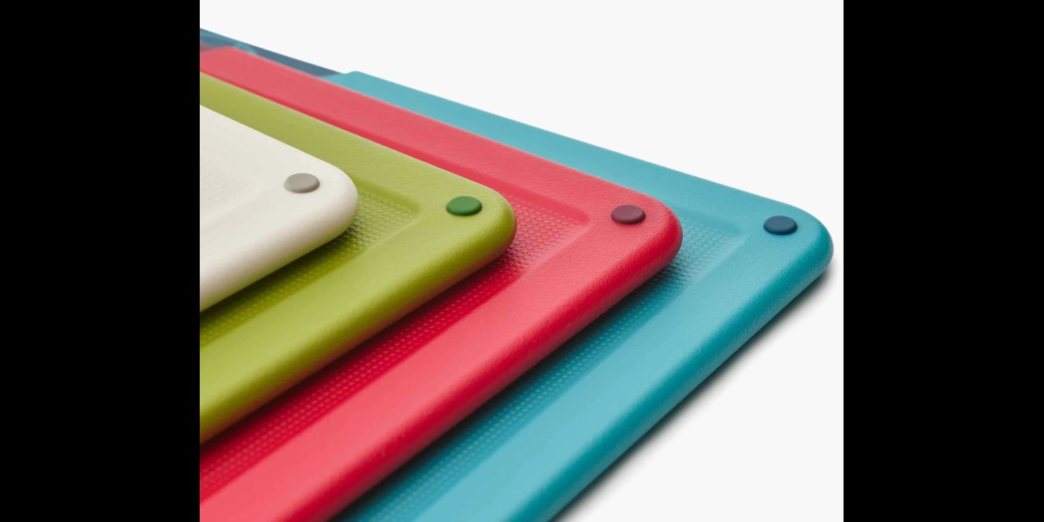 Our bestselling chopping board set includes four colour-coded boards each featuring an illustrated icon to help prevent cross-contamination.
