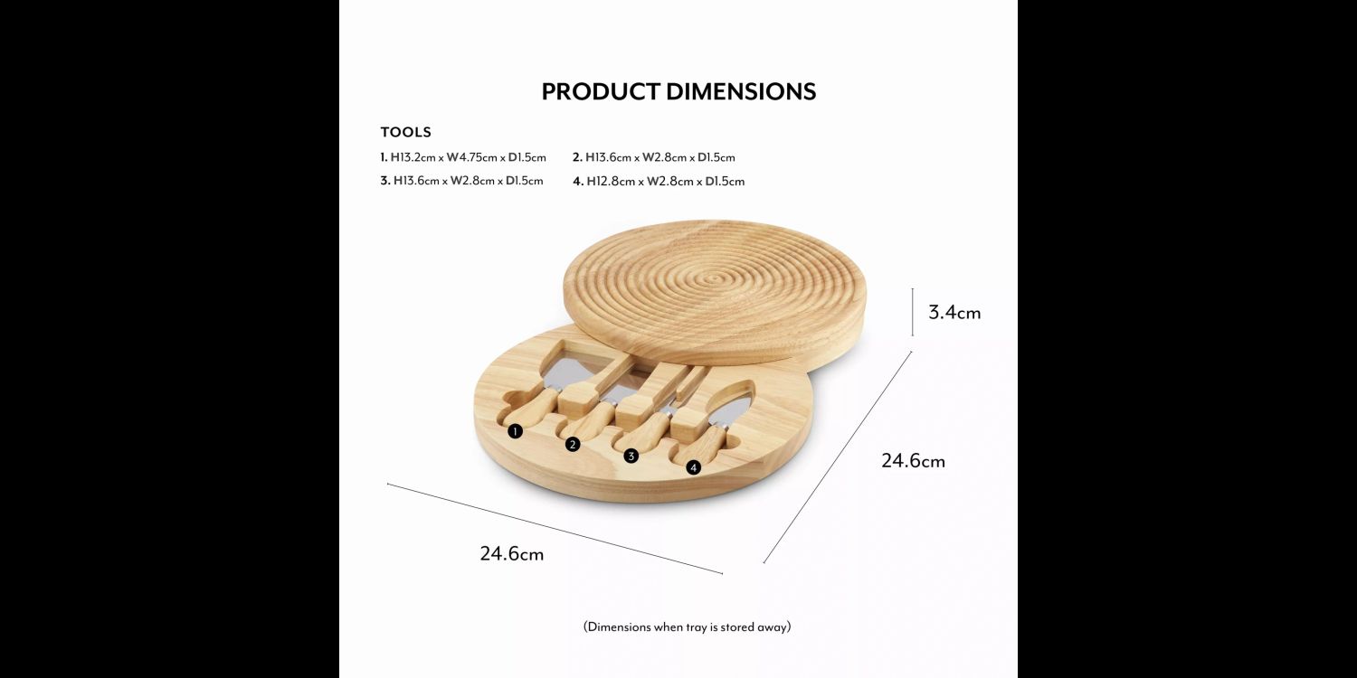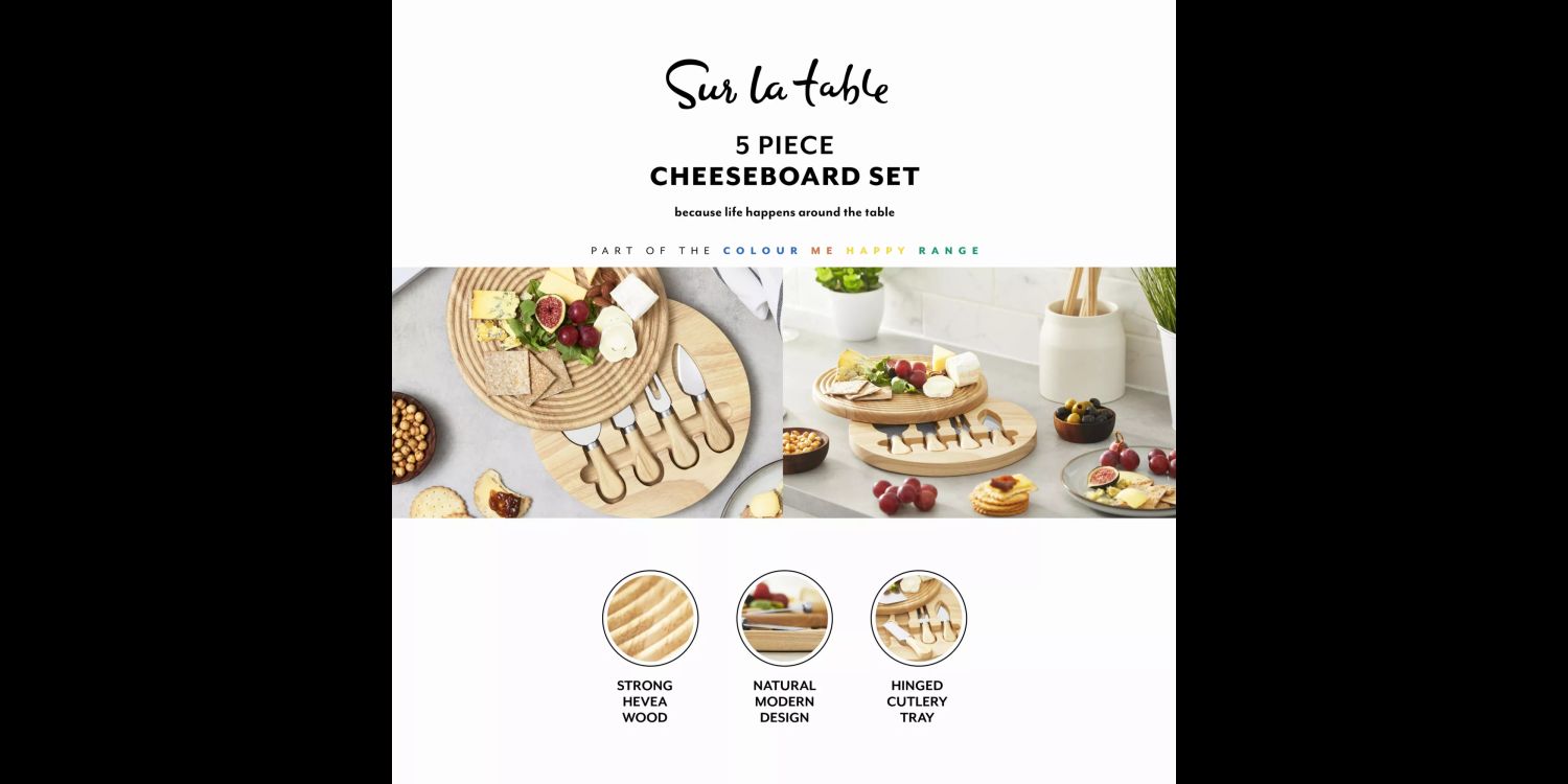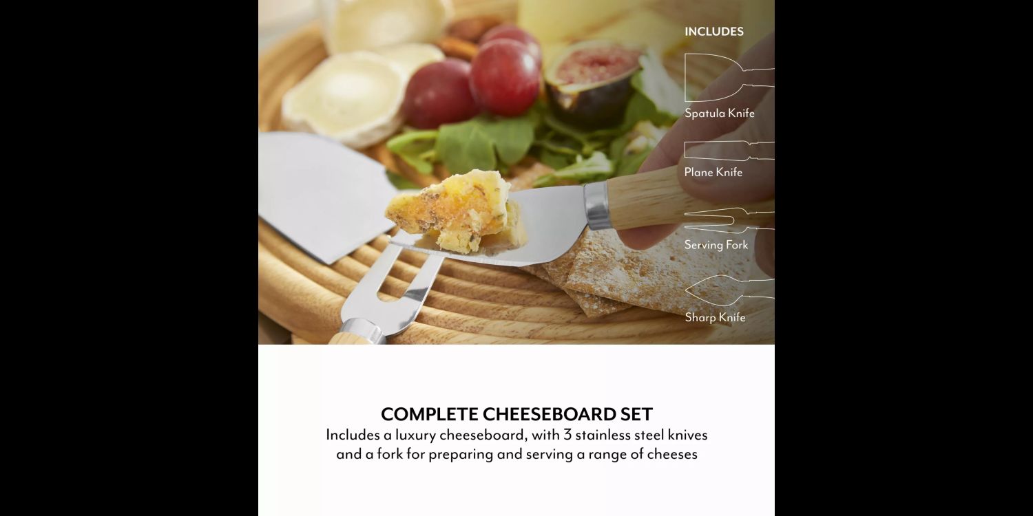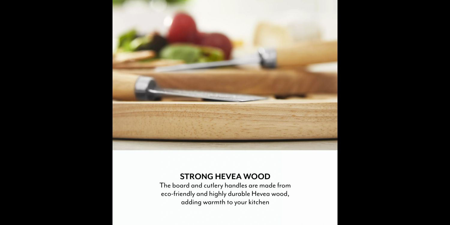 The cheeseboard and cutlery’s handles are made from Acacia wood, an eco-friendlier and more sustainable material that adds warmth to your kitchen, while protecting your countertop from scratches. It’s also highly durable, so isn’t prone to warping or cracking like conventional materials. Enjoy long-lasting use and make years of mealtime memories with your loved ones.