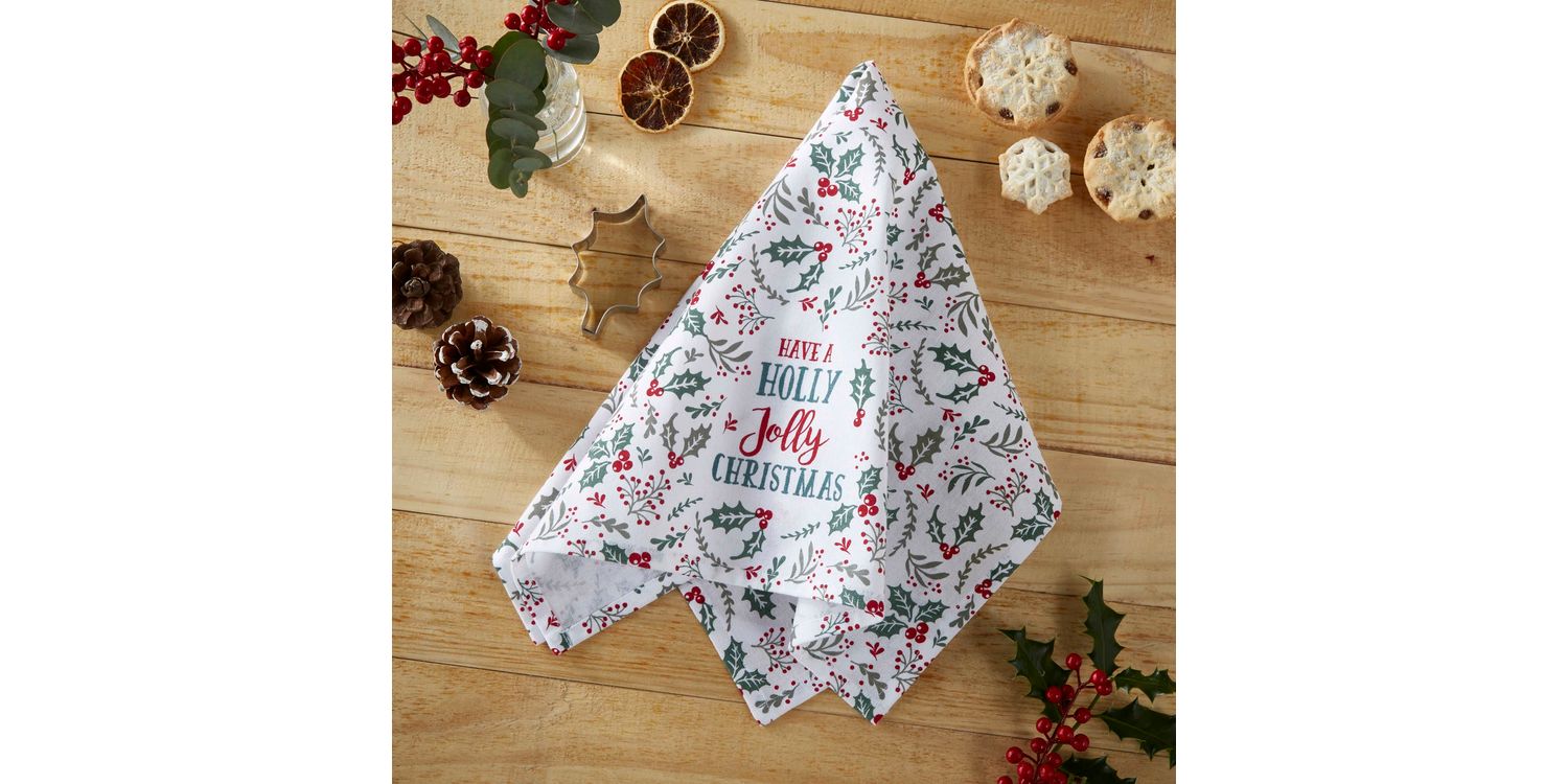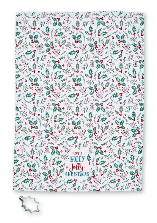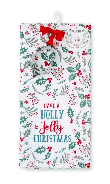 Cooksmart Christmas Jolly Holly Tea Towel & Cutter Set