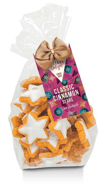 Warm, spiced flavours and a delightful texture make Classic Cinnamon Stars a festive favourite. These traditional German-inspired biscuits are crafted with aromatic cinnamon and ground nuts, then topped with a crisp sugar glaze for the perfect balance of sweetness and spice. Ideal for sharing, gifting, or enjoying with a cosy cup of tea, they bring a taste of Christmas to every bite.