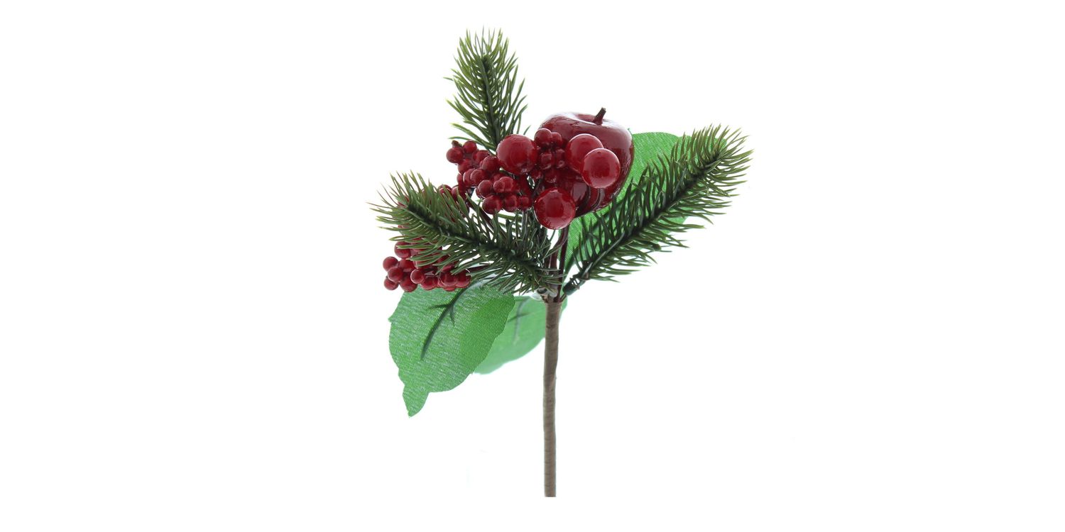 Festive Red Berry & Green Foliage Pick 18cm P045311
