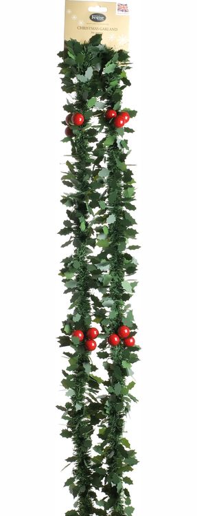 Festive Green Holly Cut Tinsel Red Berries 85mm 266685