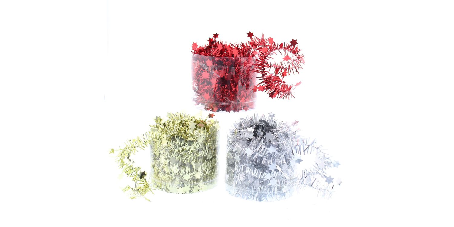 Festive Mini Die Cut Star Tinsel 10mtr x 3.5cm Asstd