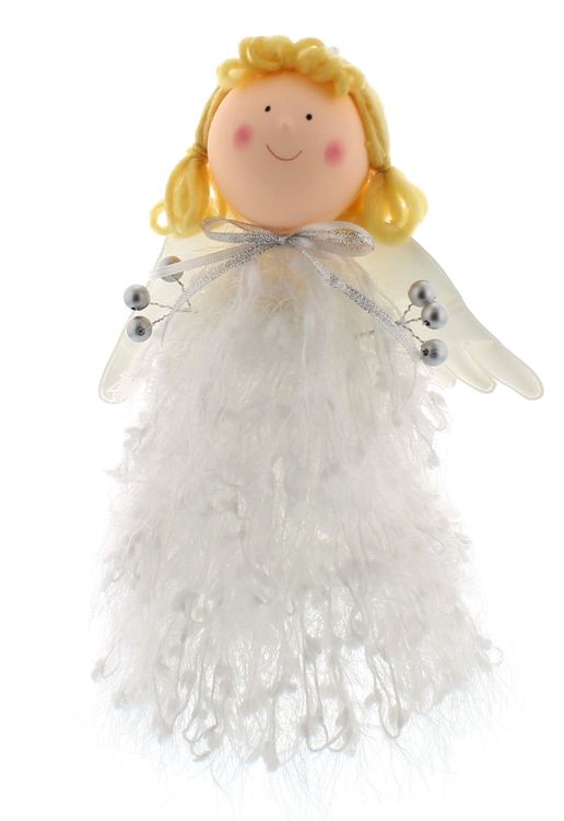 25cm cute tree top angel with white wings and fluffy dress