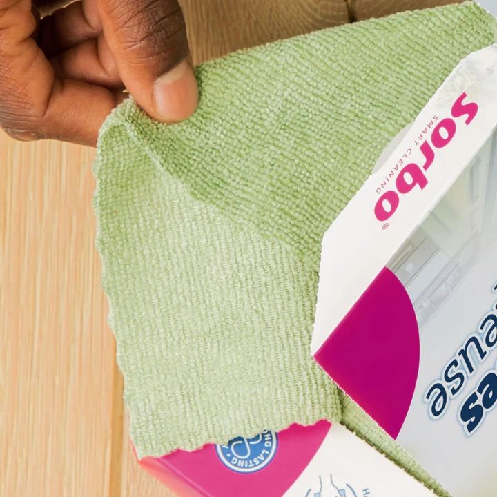 Ideal as a sustainable and reusable replacment for kitchen roll offering all the benefits of microfibre and streak free result. 16 Piece pack in a reusable dispensing box. Perfect for in the car travelling and camping. Perfect for use with and without cleaning chemicals. Machine washable at 40? degrees. Each Individual Cloth Measures: 22cm x 22cm x 0.3cm. Plastic free packaging. From a range of innovative cleaning tools and solutions from Sorbo