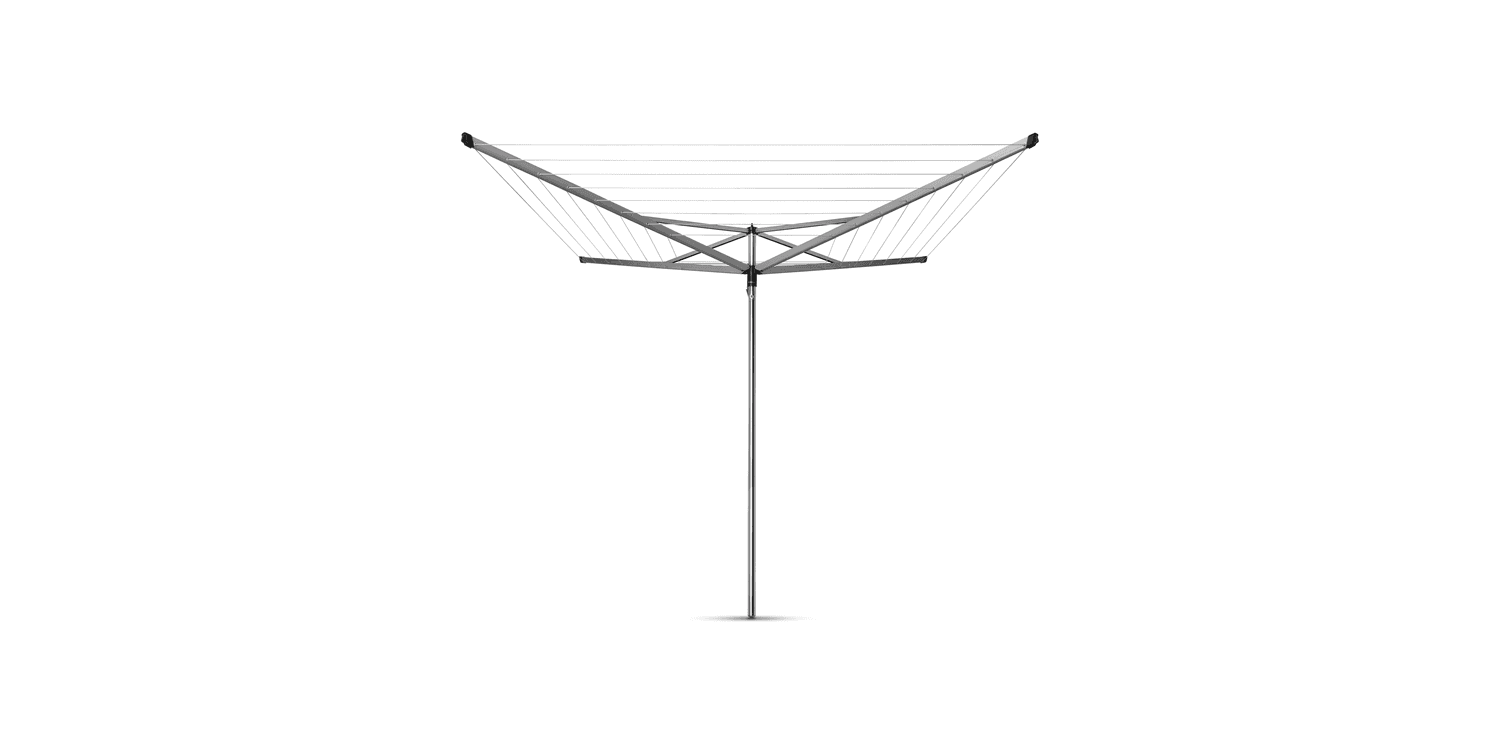 So much to dry, so little space… The Brabantia Essential rotary dryer takes up minimal room in your garden, but has plenty of quality, UV-resistant washing line with non-slip profile. And this partner-in-laundry has more pleasant surprises for you. Like the specially designed arm-end to hang clothes hangers from or its sturdy hanging loop for easy storage. All you need for easy-breezy natural drying.