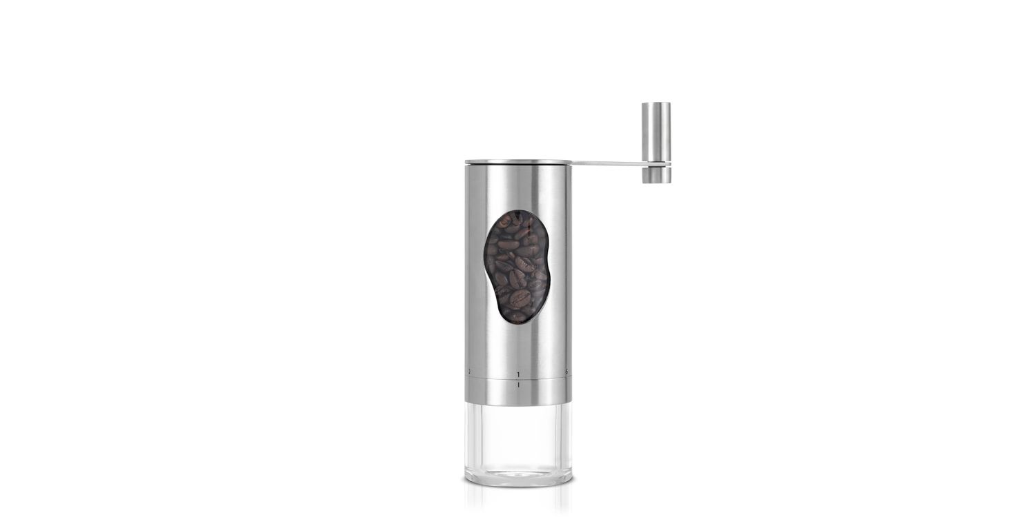 The AdHoc MRS. BEAN coffee grinder with Adjustable Coarseness Settings is developed with a manual energy-efficient crank handle that makes grinding your favorite coffee varieties effortless. The modern and stylish look in elegant stainless steel and acrylic design has nothing to do with great-grandma’s old-fashioned hand grinder.