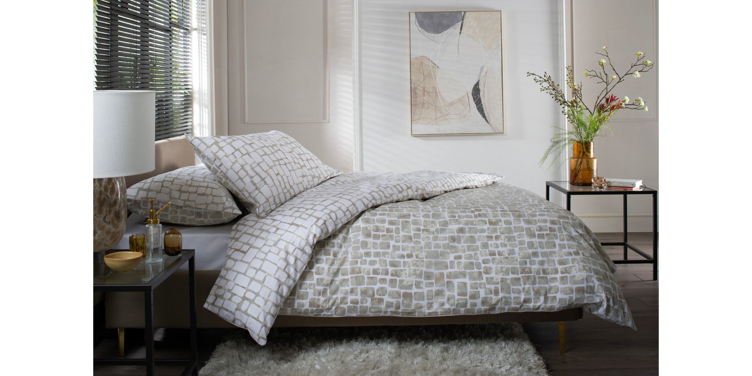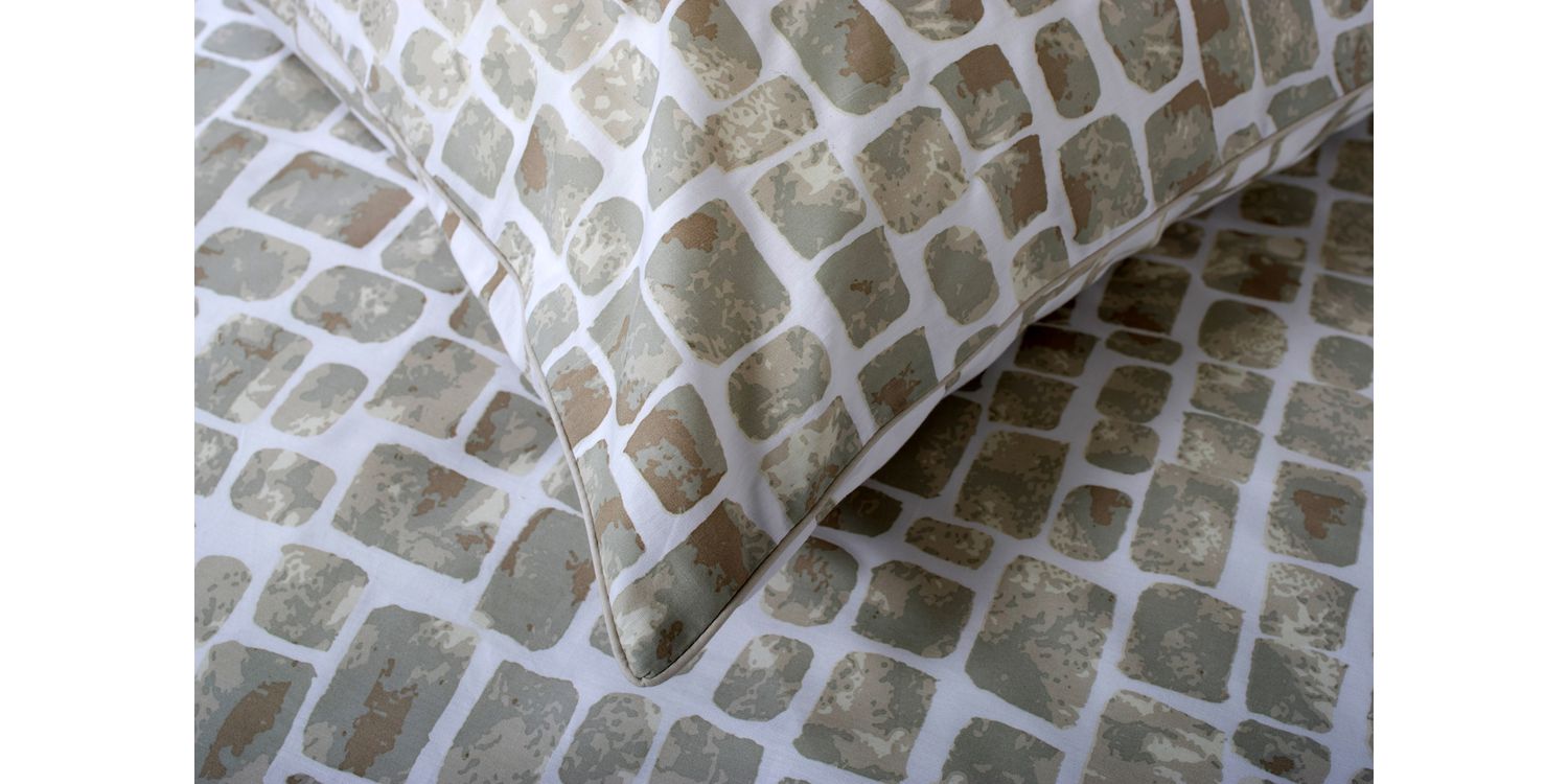 Digitally printed on smooth 180 thread count cotton, this striking geometric design brings a modern edge to your décor, finished with a clean piped edge for a tailored look.