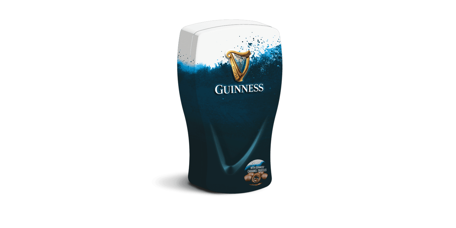 a Pint glass shaped tin with Guiness Caramel Truffles