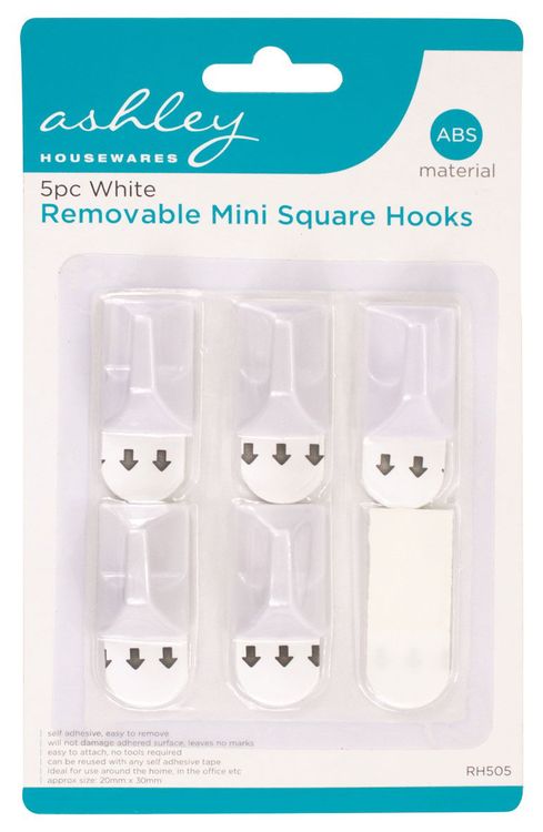 Ashley Housewares White Removable Mini Square Hooks 5pc BB-RH505