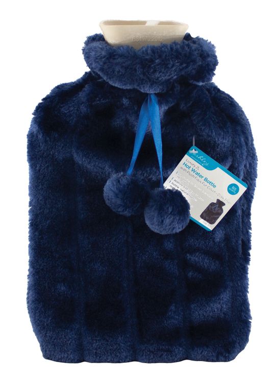 Hot Water Bottle Faux Fur Cover Blue 2ltr BB-HW183