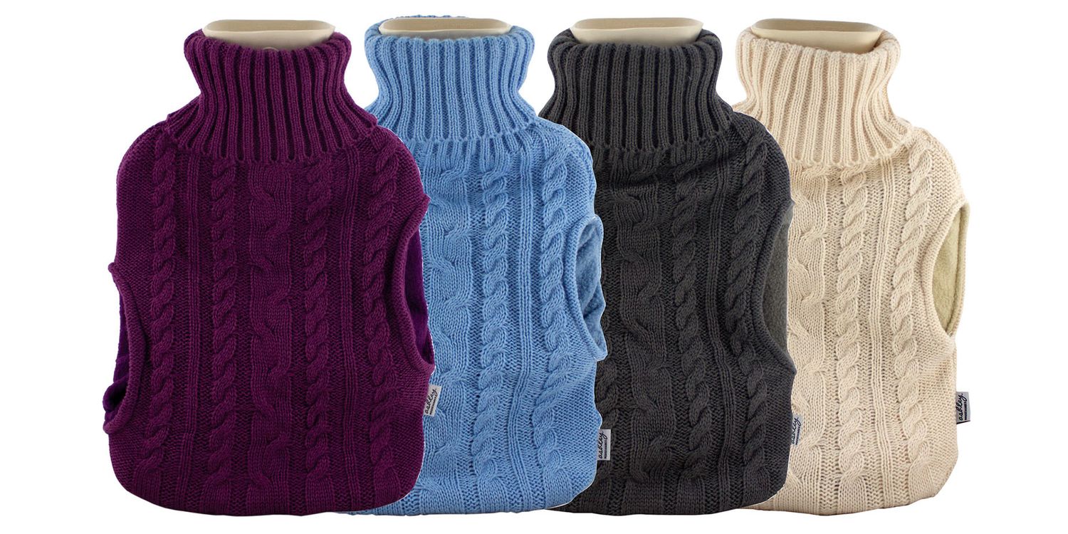Hot Water Bottle with Knitted Cover & Pockets 2ltr