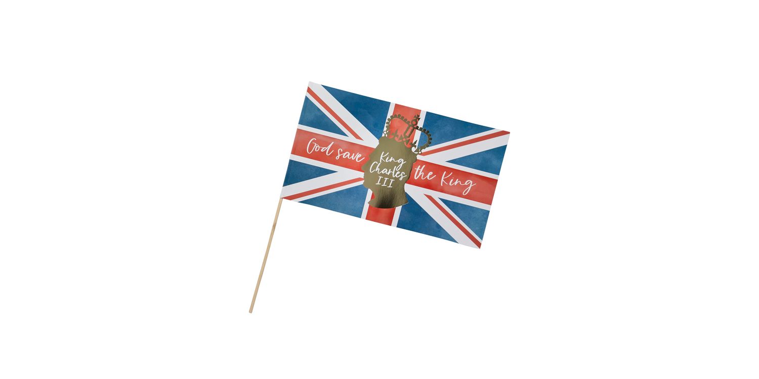 Wave in the long bank holiday coronation weekend with these stunning King Charles III, Union Jack paper flags!  Perfect for all parties and celebration, you can show your love and appreciation for King and country.  Ideal for use as part of your coronation celebrations.