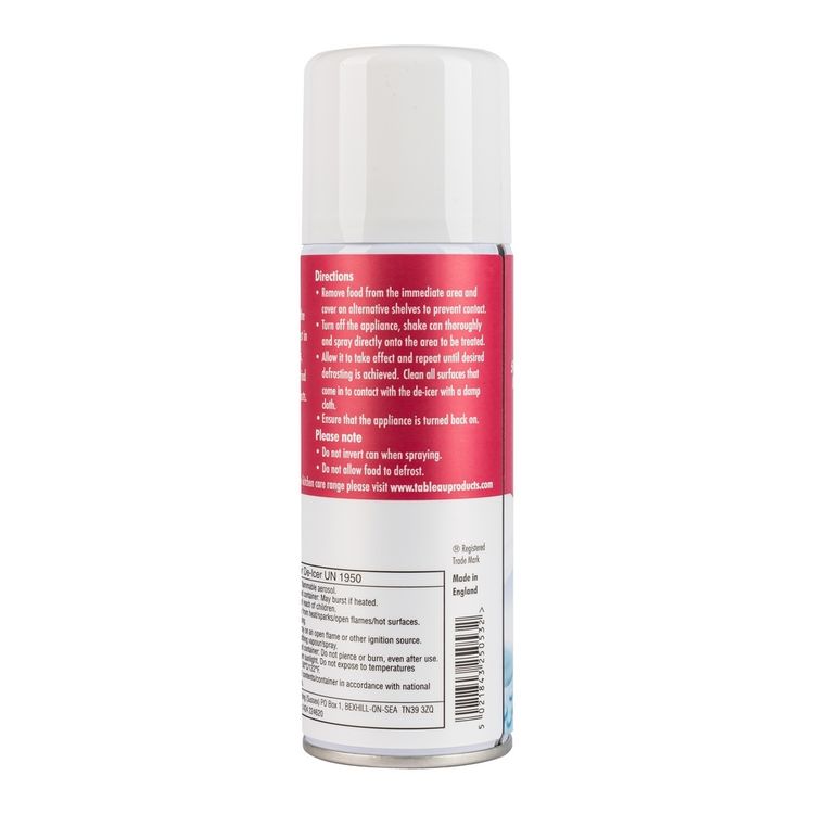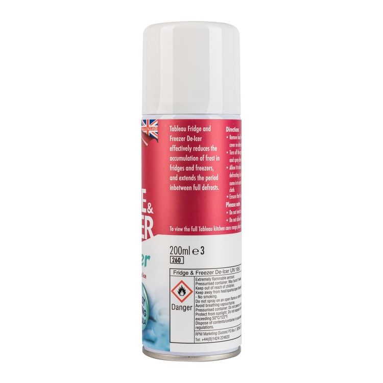 Keep on top of frost build up in your fridge or freezer with Tableau Fridge & Freezer De Icer. This fast acting spray helps to loosen light ice and reduce frost, so you can clear shelves and walls more quickly without a full, time consuming defrost every time.