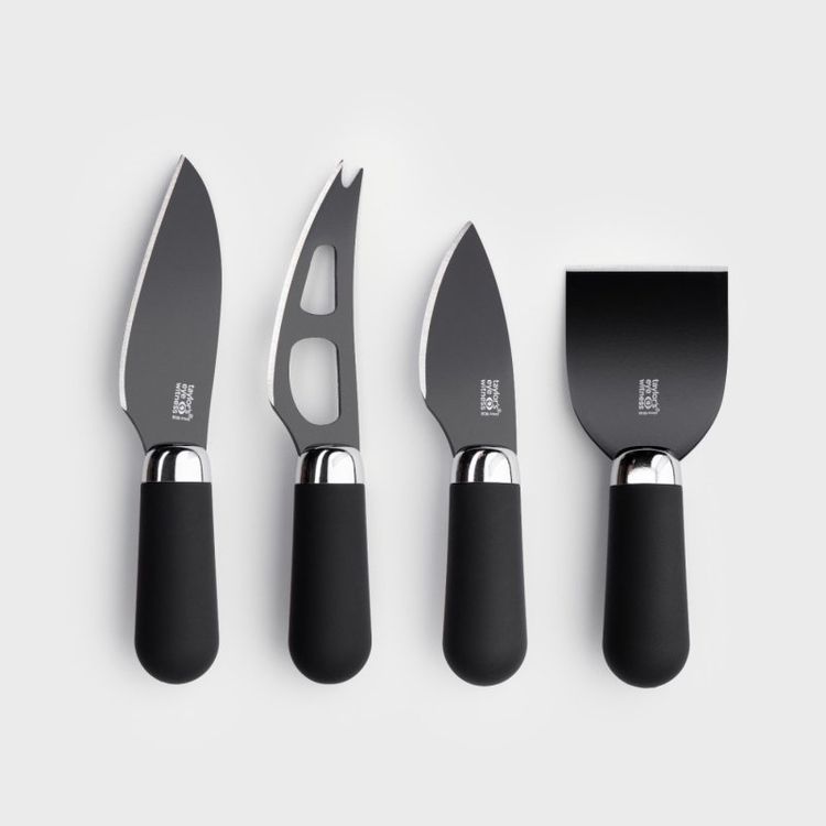Brooklyn® Chrome cheese knives feature easy-to-clean hard ceramic coated stainless steel blades and soft touch handles. Set includes hard, soft, parmesan & bell cheese knives.