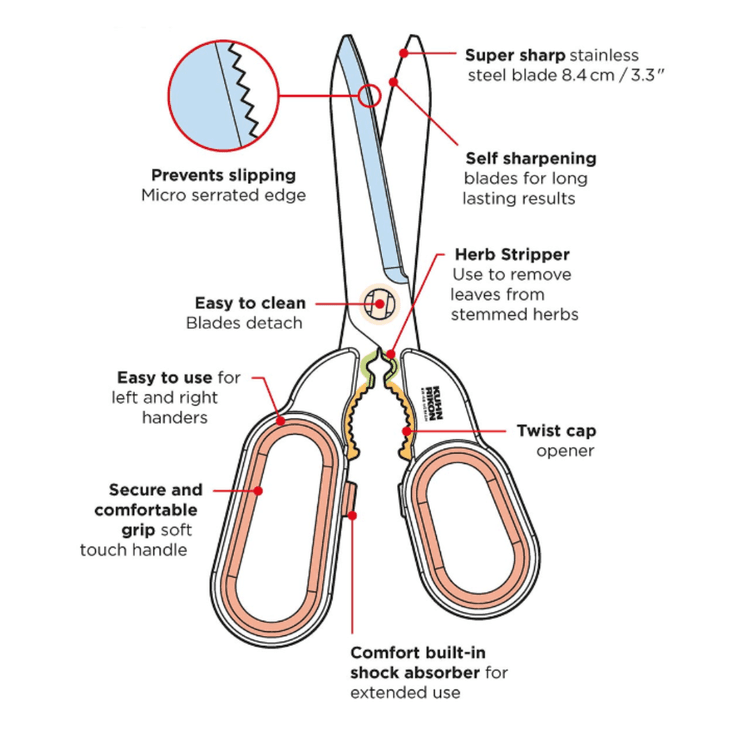 Our Universal Kitchen Shears are an invaluable kitchen aid. They’re ideal for cutting cardboard, thick plastic packaging or food.