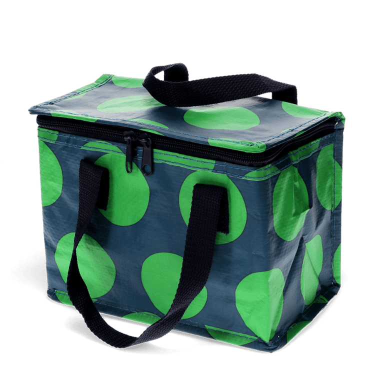 Made from recycled plastic materials, this handy insulated lunch bag features a fun green and blue Spotlight print.
