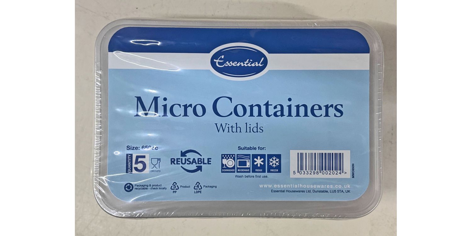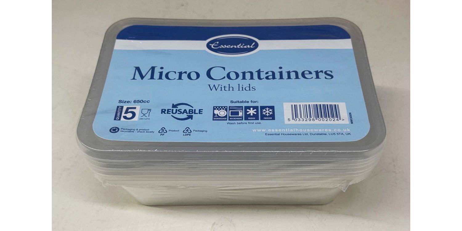 Essential Housewares Plastic Microwave Container & Lid 650ml Pk5