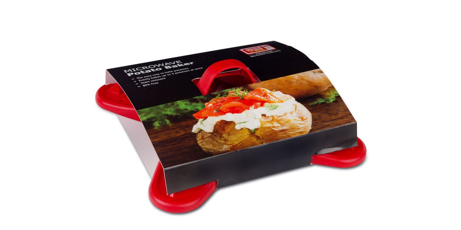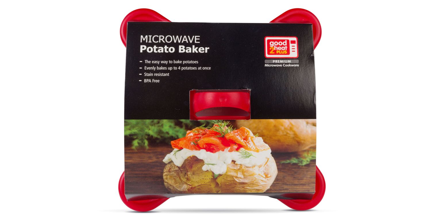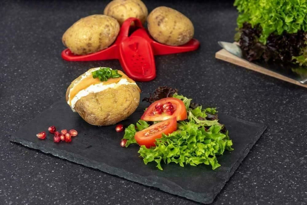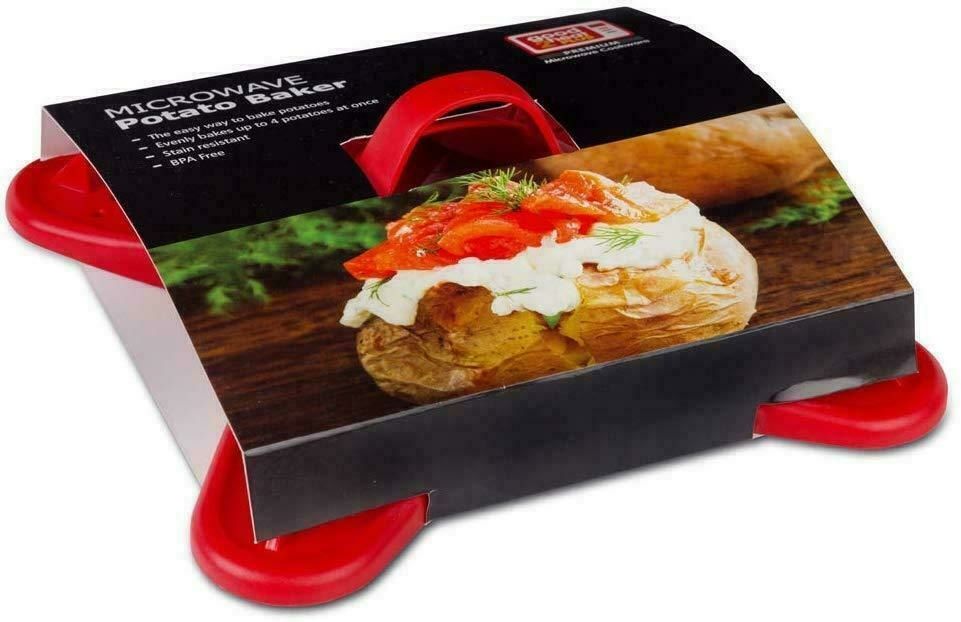 The quick and easy way to bake potatoes in microwave. The raised stand and air holes allow up to four potatoes to be baked evenly at one time, without the need for turning.