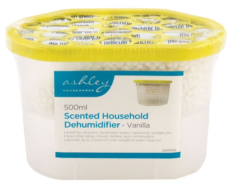 This vanilla scented dehumidifier will absorb up to 3 times its own weight in water to help prevent damp, mould, mildew & condensation build up. It is especially useful in bedrooms, cupboards, caravans, boats &sheds.