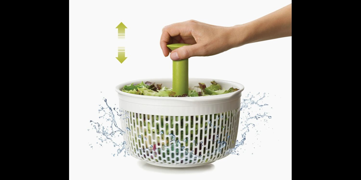 • Easy pump-action salad-spinning mechanism