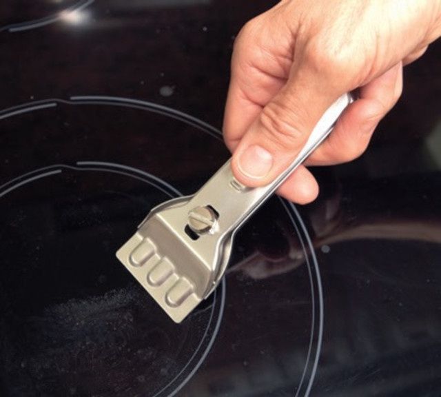 Simply scrape it across the surface of your hob, and the super-sharp blade will gently lift burnt-on food, without making a mess of your precious stovetop.