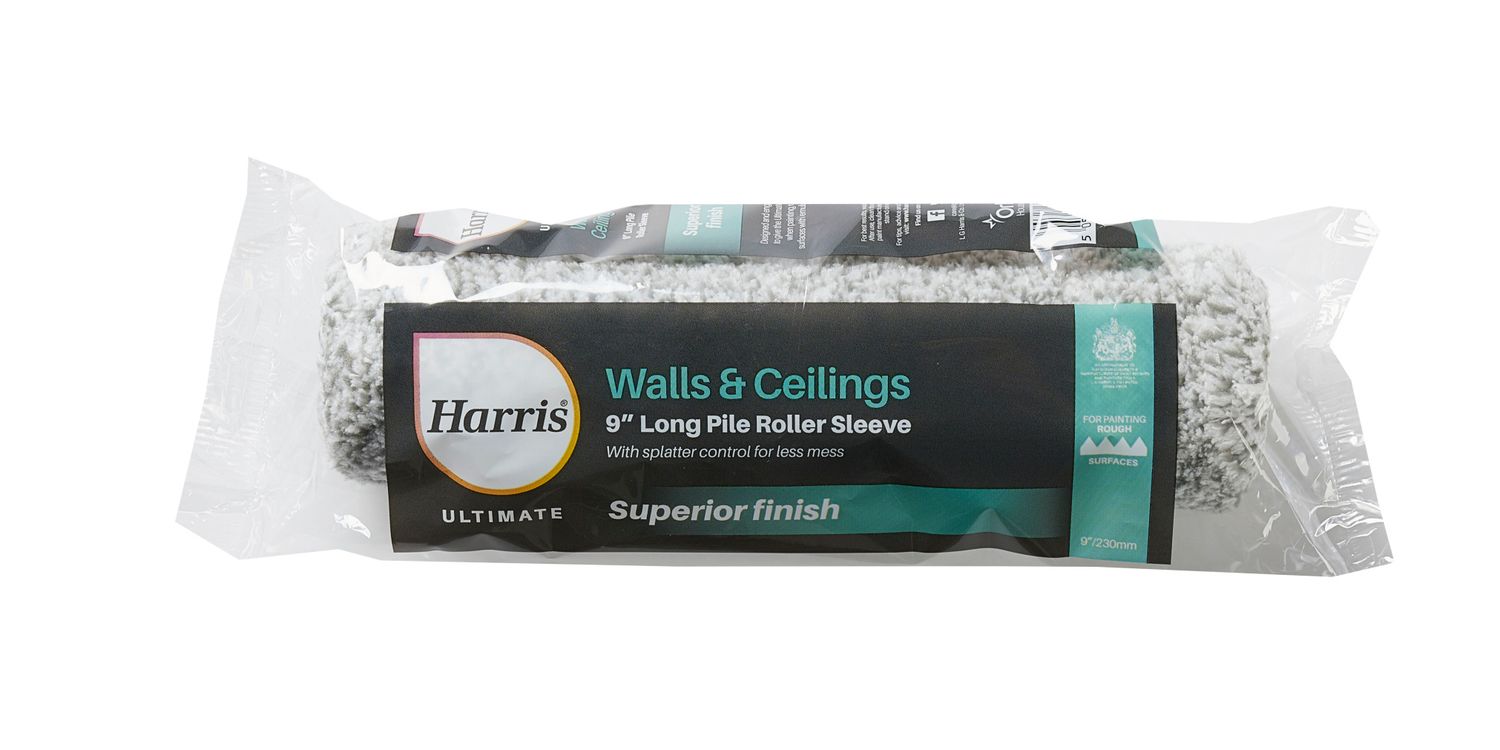 For use with Harris 9 inch roller frames. Ideal for painting large rough surfaces such as artex ceilings with emulsion paints. For best results, rinse roller sleeve before use to remove any loose fibres.