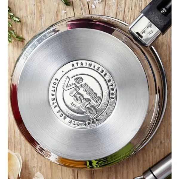 This Judge Vista stainless steel milk pan is perfect for warming milk, heating soups or making delicious sauces. Its compact size makes it easy to store in any kitchen. It has impressive performance with even heat distribution on all hob types thanks to the 'hot forged' base; features internal time-saving measuring guides and has safe and secure handling thanks to easy grip, comfortable, phenolic low-heat transmission handles