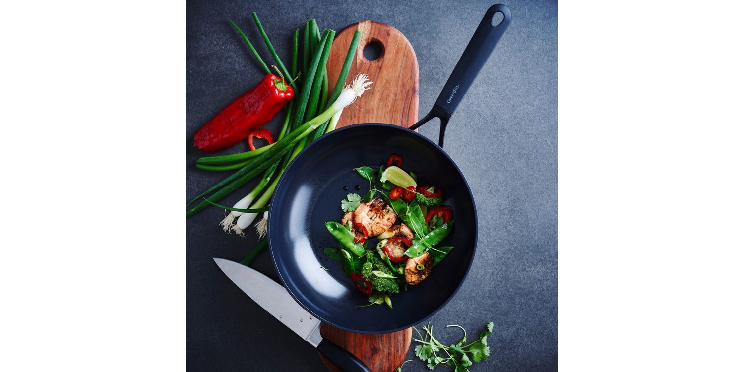 Designed with a rock hard ceramic non-stick coating this Green Pan wok boasts a reinforced diamond layer to ensure effortless food release and easy clean-up. This ceramic wok is ideal for deep frying and all types of stir-fry’s. This PFAS free pan has a ceramic non-stick coating reinforced with diamond to provide an easy release of food and a quick heating cooking surface without the release of toxic fumes. The encapsulated base makes this pan suitable for dishwasher cleaning and can be used on all hob types. Made with a 3.6L capacity and high sides to reduce splashes when cooking. the V-shaped flameguard handle has a seamless look and feel.