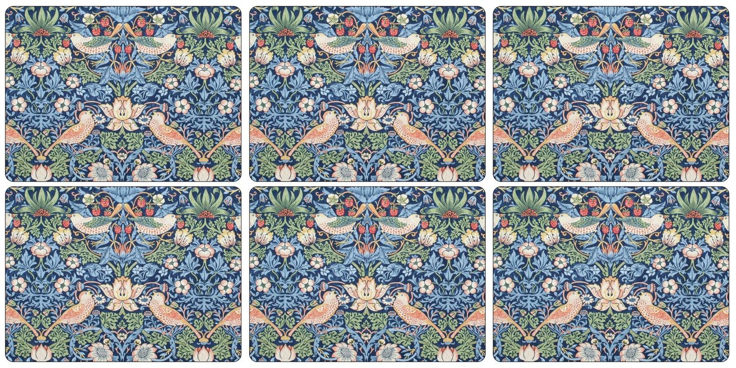 Pimpernel Morris & Co Pack of 6 Strawberry Thief Blue Coasters or Placemats