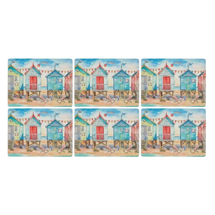 Pimpernel Set of 6 Beach Huts Tablemats or Coasters