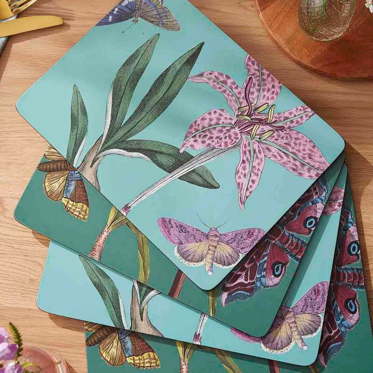 Fluttering butterflies and bright botanicals bring this beautiful set of Botanic Garden Flora & Fauna tablemats or coasters to life. Bring a touch of natural beauty to mealtimes.