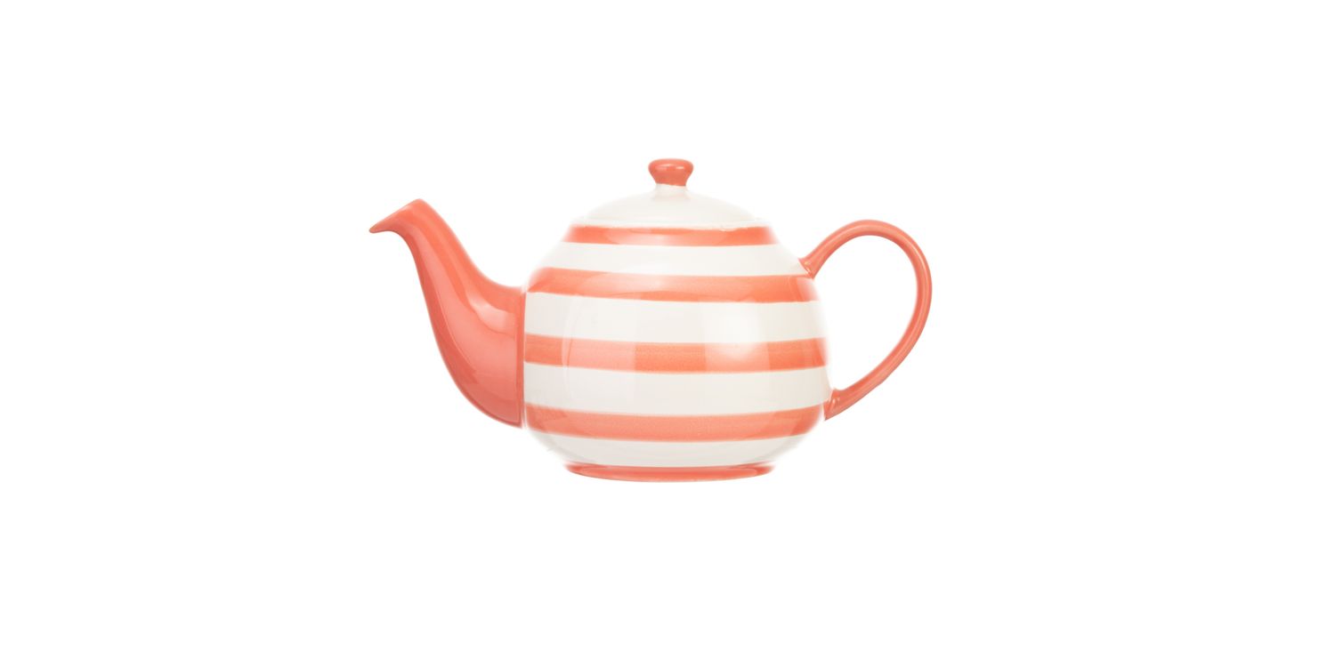 A generously sized teapot with a red stripe design, perfect for tea with family and friends.