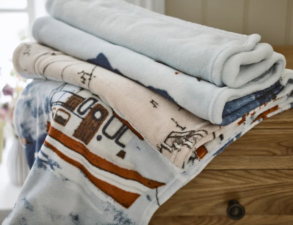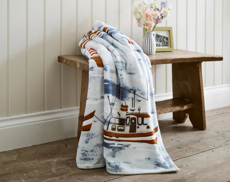 Crafted from soft, cosy fleece fabric with warm sherpa reverse, this throw is perfect for draping over sofas, beds, and armchairs, adding both warmth and coastal character to your living space. The charming illustrated design makes it a wonderful gift for anyone who loves the seaside.