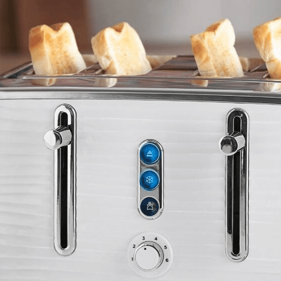 The Inspire 1800 watt, 4 Slice White Toaster has 7 toast settings and a high-lift function for easy removal of smaller slices of bread, a defrost feature to make a speedy slice of toast straight from frozen and a cancel button to save your crunchy slice of toast from burning. The Inspire 4 Slice Toaster also comes with a reheat setting for those hectic mornings, when you need to heat up your toast to a time that’s more convenient for you.