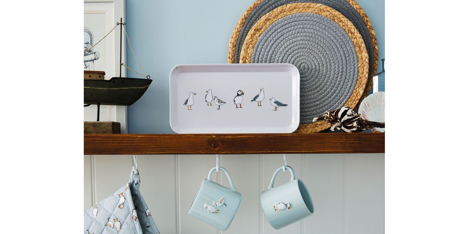 Bring a touch of coastal charm to your home with the Cooksmart Small Serving Tray in Coastal Birds design. Featuring a beautifully illustrated seabird motif, this lightweight and durable tray is perfect for serving drinks, snacks, or breakfast in bed. Its wipe-clean surface makes everyday use effortless, while the raised edges ensure stability and convenience.